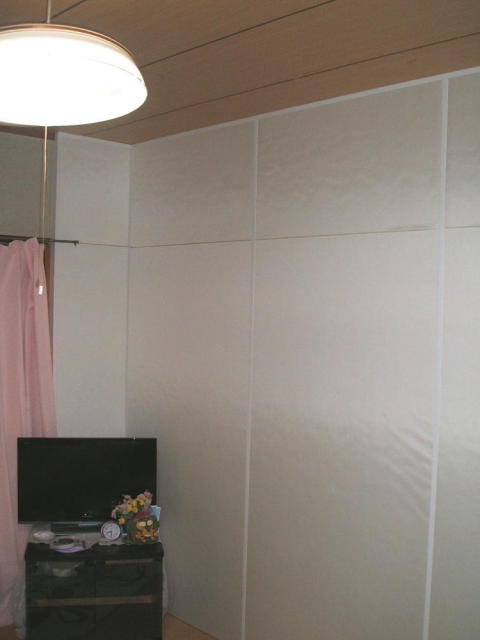 この壁1面と押入れの中にすることで、ボードが設置された部分から入る声もれがずいぶん軽減さえたと思います。