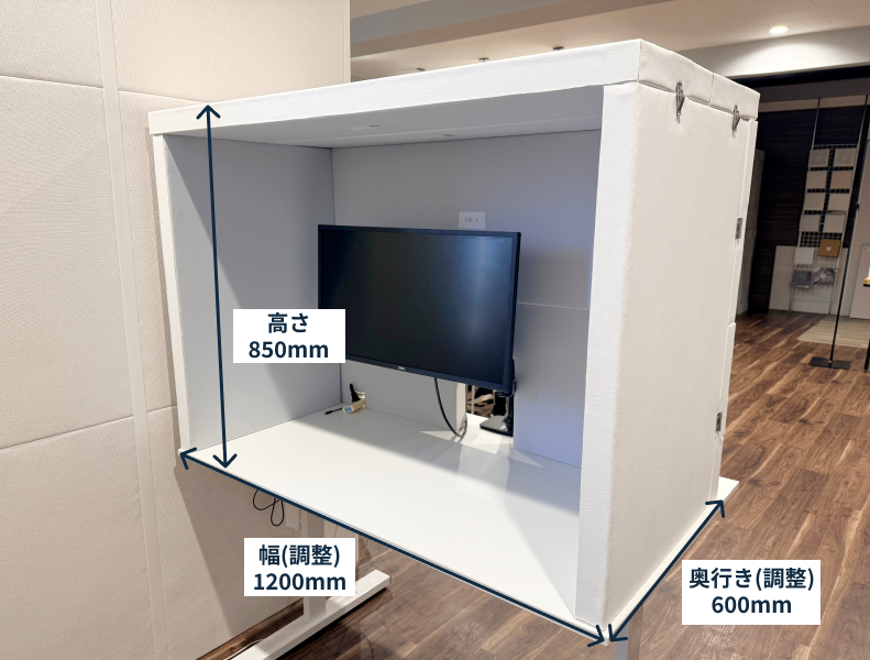 ブースがデスクからはみ出さないよう、デスク天板に完全に収まるサイズでご注文ください。 - 上には物を置かない