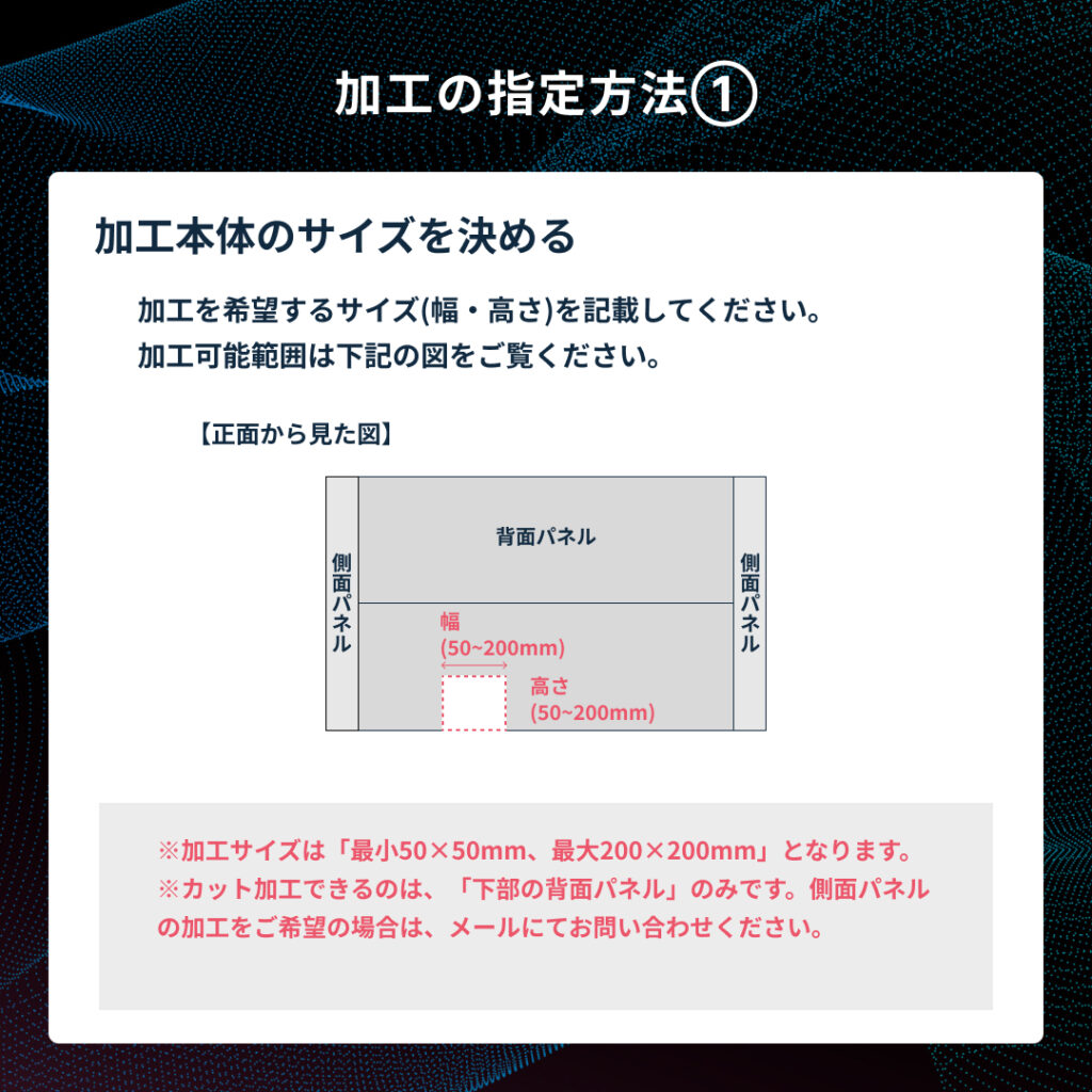 ※側面パネルの加工をご希望の場合は、メールやLINEにてお問い合わせください。