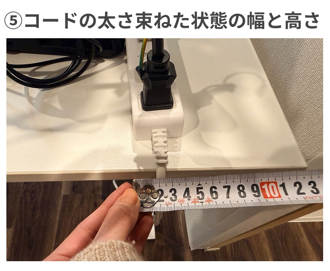 ⑤コードの太さ・束ねた状態の幅と高さ