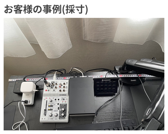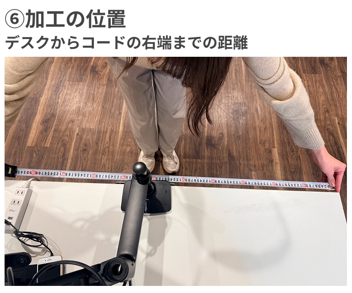 注文の際に外寸右端から加工本体右端までの距離を指定するため、デスクからコード右端までの距離を測りましょう。