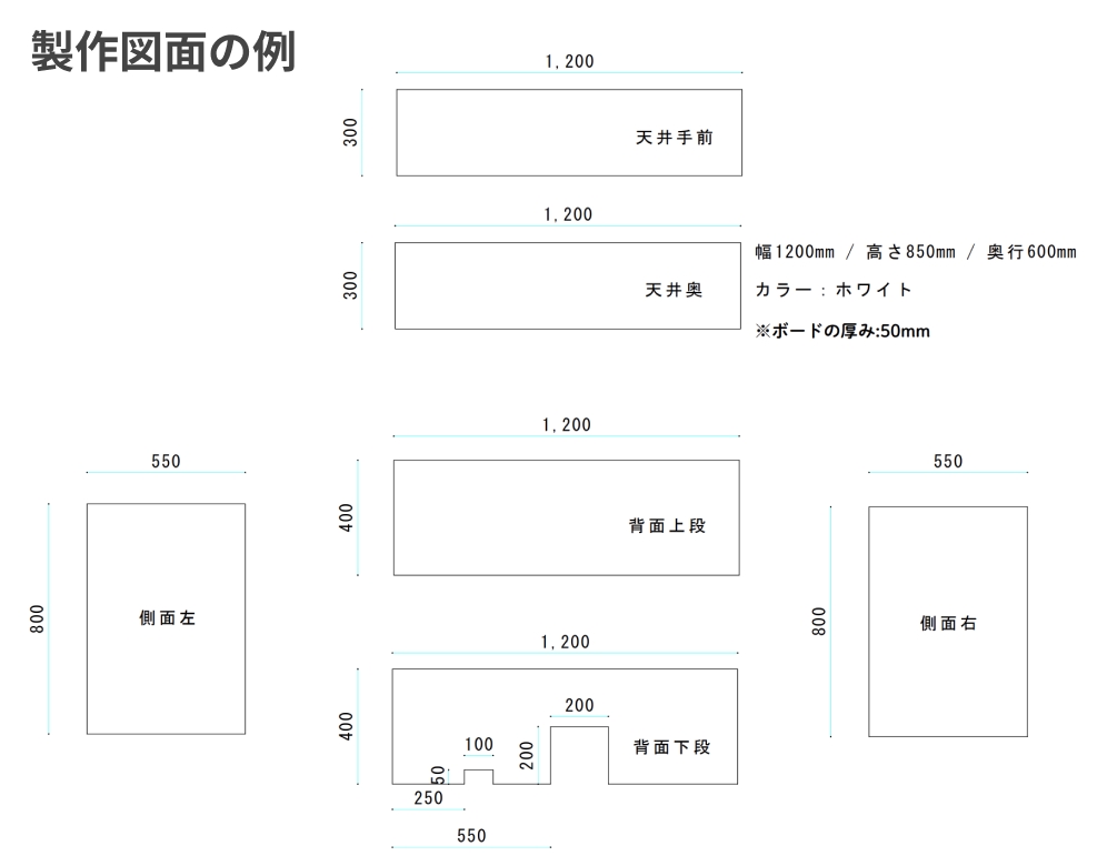 採寸いただいた寸法をもとに図面をこのように作成しました。