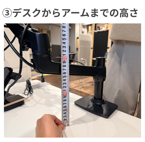 ③デスクからアームまでの高さ