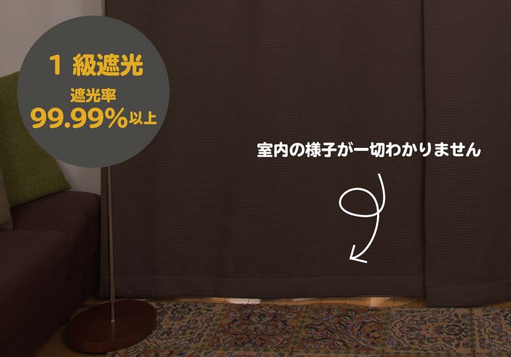 また遮光1級なので眩しい西日などを遮ることができ、室内の様子も見えなくなりますので快適に過ごすことができます。