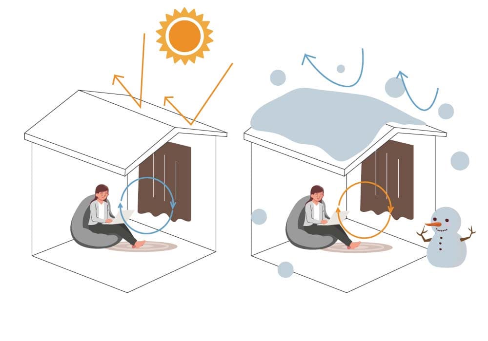 また、空気の層ができることで夏は熱気・冬は寒気を遮り、冷暖房の省エネ・節電効果が期待できます。