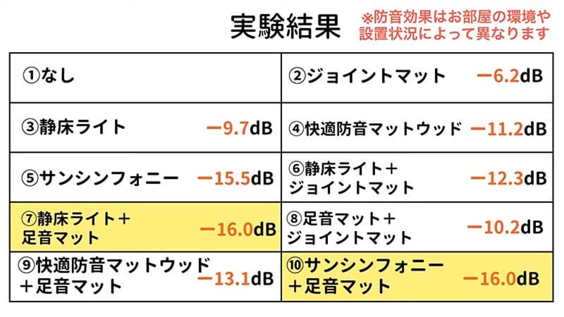 建物の性能や聞こえ方の個人差にもよりますが、 この3つをおさえることによって 得られる防音効果が変わります。