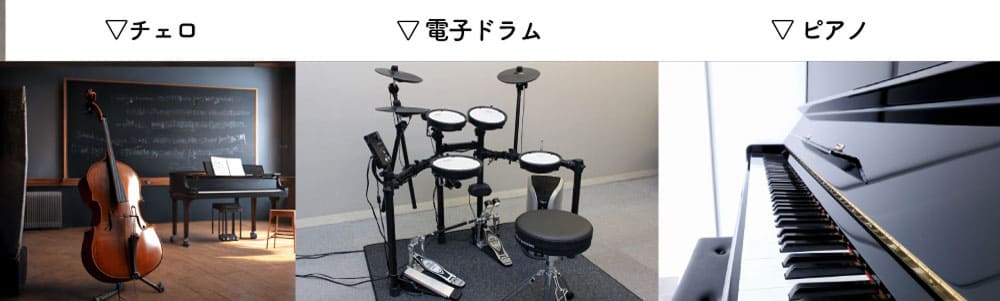 ピアノやチェロ、マリンバや大きめのハープ等は楽器が床面に直接触れているためその振動がそのまま床へダイレクトに伝わり、床から建物内部を伝って音として広がってしまいます。
