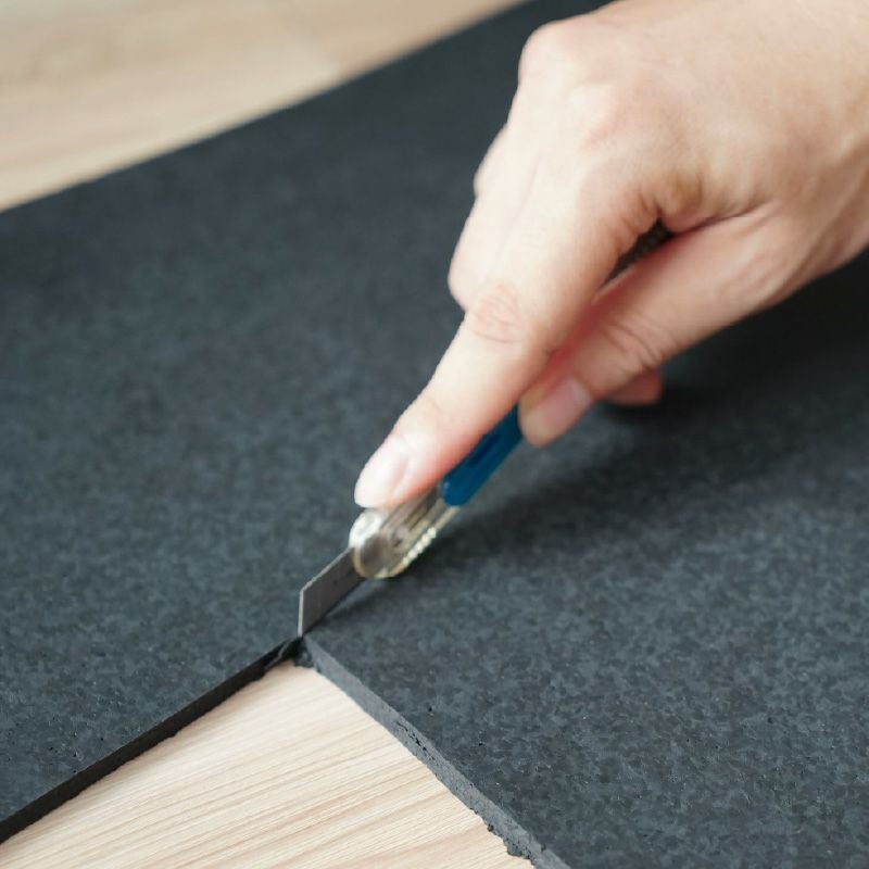 P防振マットはフリーカットタイプなので、カッターでのカットも可能。