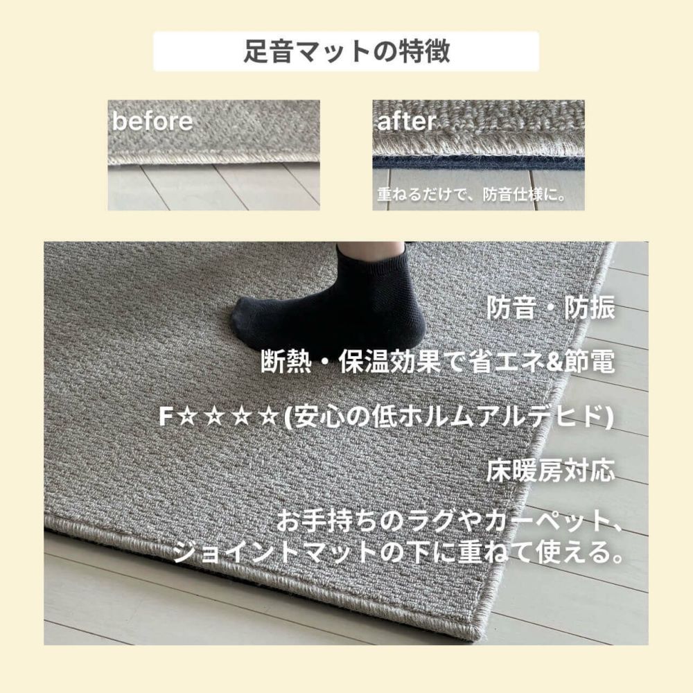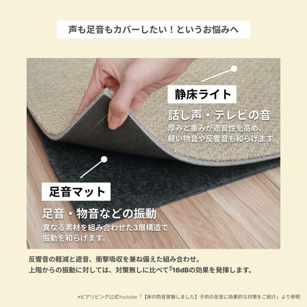 「足音マット」は、カーペットの下に敷くだけで、下の階に伝わる振動音を軽減する防音マットです。