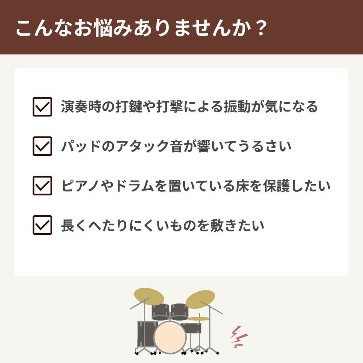 厚みや重量がしっかりある分、楽器の音が外に漏れないように軽減することができます。外からの騒音対策にも◎