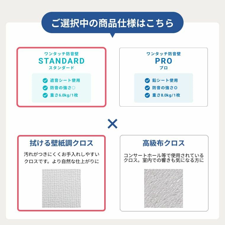 ワンタッチ防音壁 スタンダード 高級布クロス仕上げ 900mm×900mm ピアリビングオリジナル。遮音・吸音・防音が1つでできる防音ボード。 |