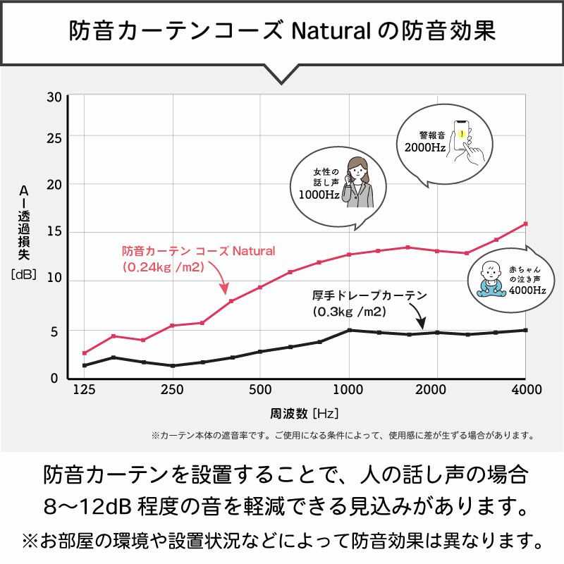 - コーズNaturalは、どれくらいの防音効果がありますか?