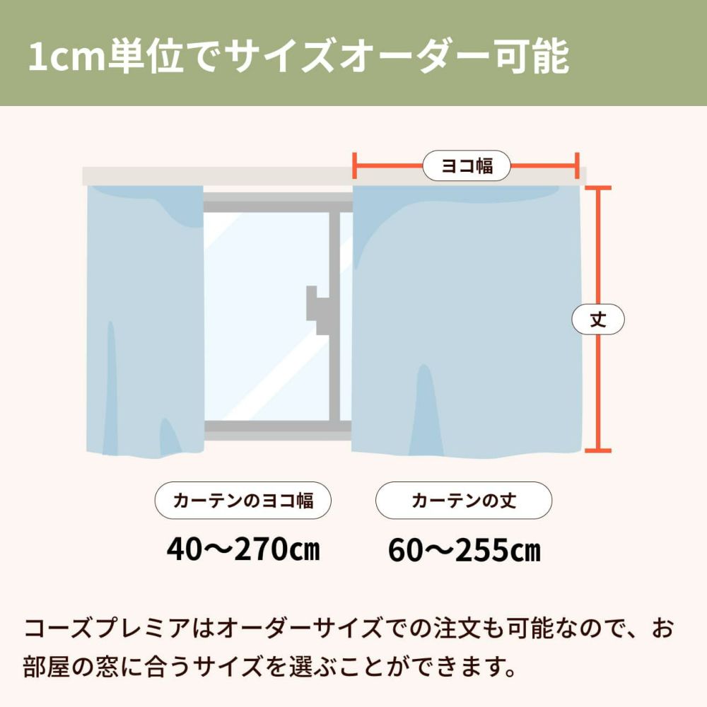 コーズプレミアは必要に応じてオーダーサイズでの注文も可能なので、お部屋の窓に合うサイズを選ぶことができます。お見積もりツールから簡単にサイズを確認いただけます。