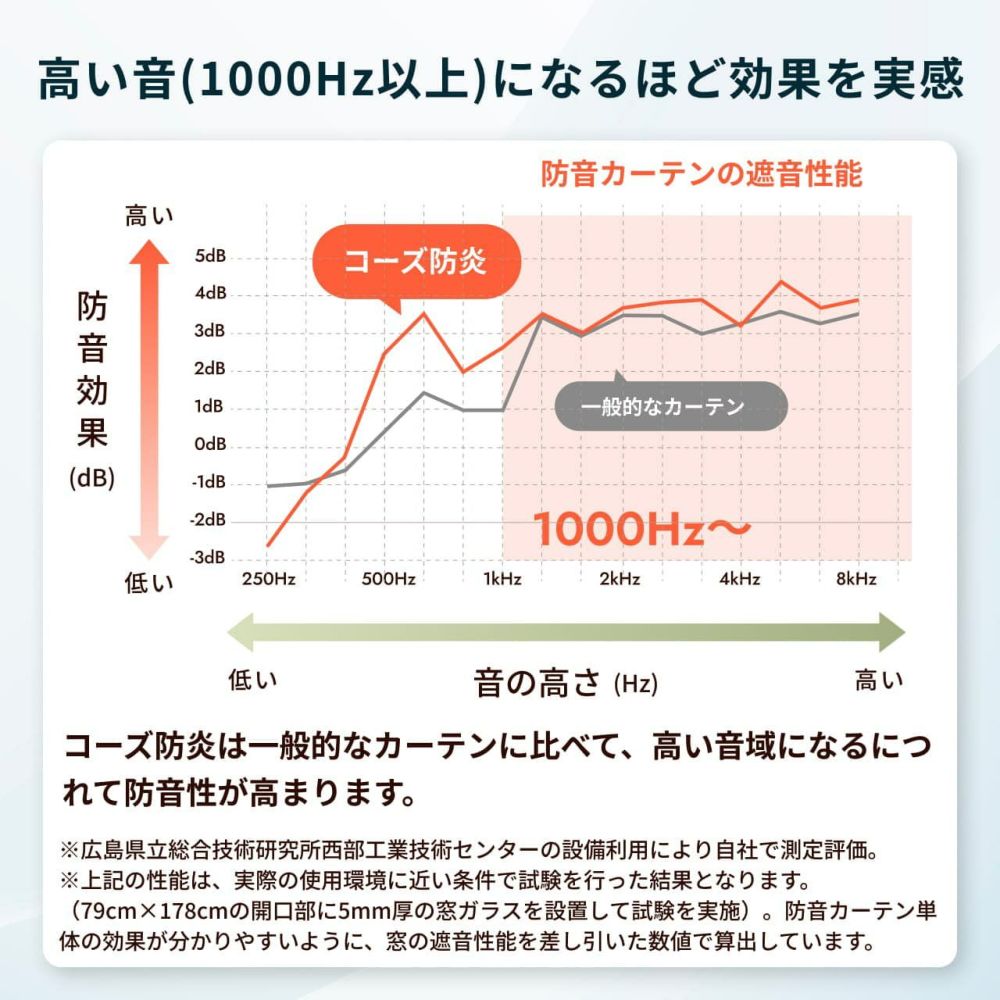 ※「コーズ防炎タイプ片面仕様」の場合は、5重構造となり5〜12dBの軽減となります。