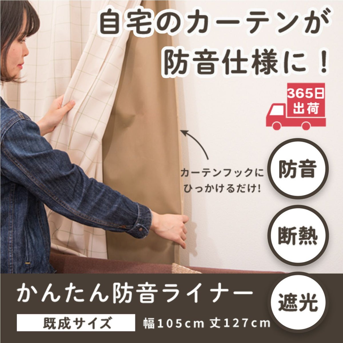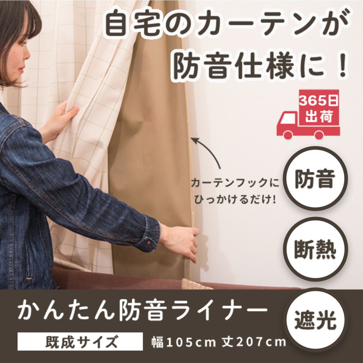 簡単取り付けで既存のカーテンを防音・断熱・遮光カーテンにできる『かんたん防音ライナー』です。