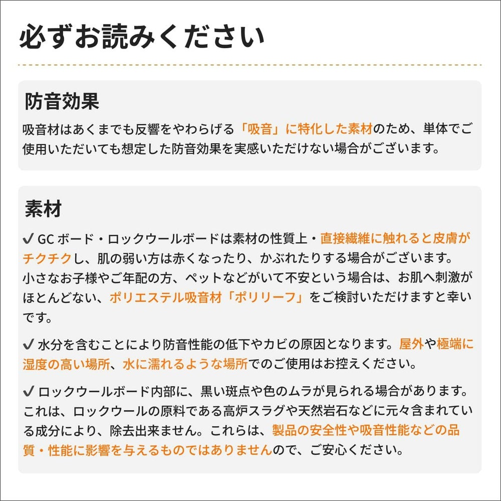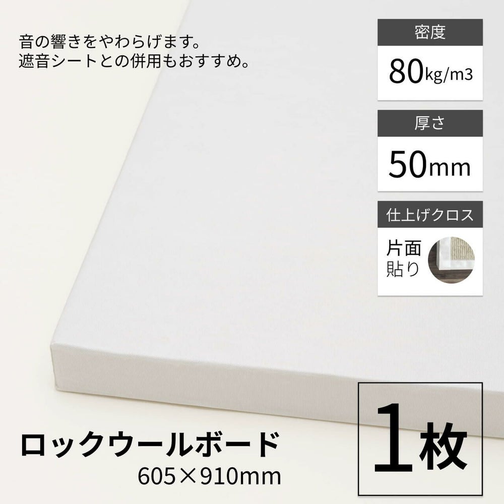 ロックウールボードは、ホームセンターなどの店頭では販売されていない高密度仕様になっているため、一般的な低密度の吸音材に比べて、吸音効果だけでなく遮音性にも優れた吸音材です。