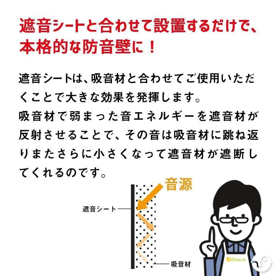 ▼防音目的で吸音材をお求めの場合は、遮音材と併用することで、さらに防音効果が高まります。