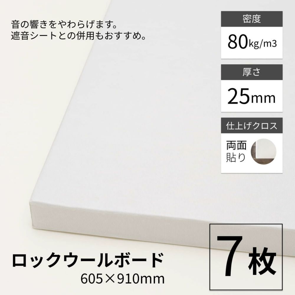 ロックウールボード 密度80kg/m3 両面クロス貼り 605×910mm 厚さ25mm 7枚