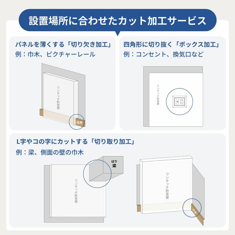 ロックウールボードやGCボード等の吸音ボードのカットは承っておりません。
