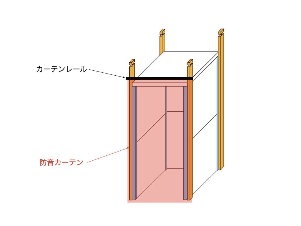 出入口を防音カーテンで塞ぐ場合の組み立て方