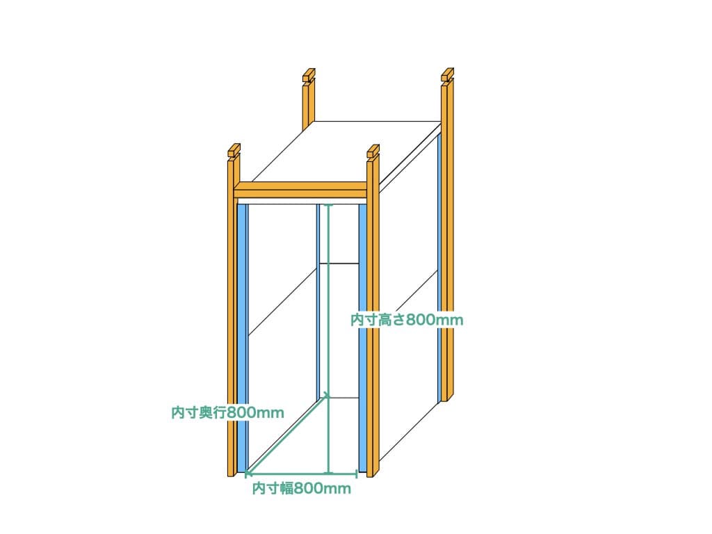 - 内寸:幅800mm 高さ1800mm 奥行900mm