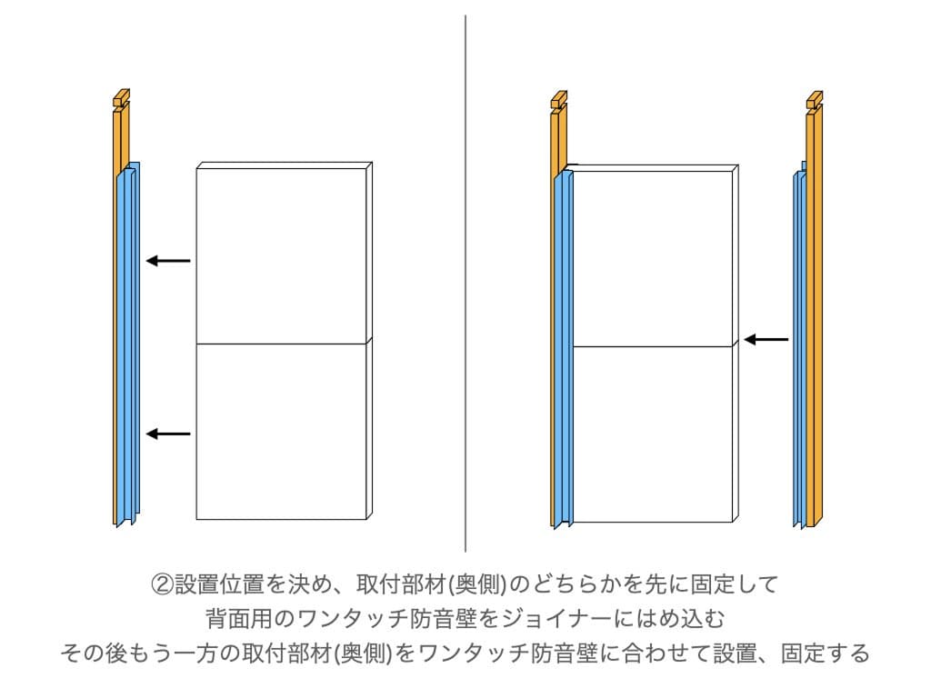 背面用のワンタッチ防音壁をジョイナーにはめ込む