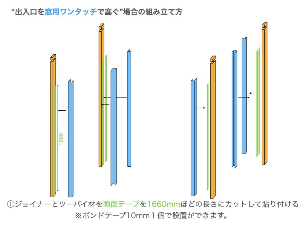 出入口を窓用ワンタッチで塞ぐ場合の組み立て方