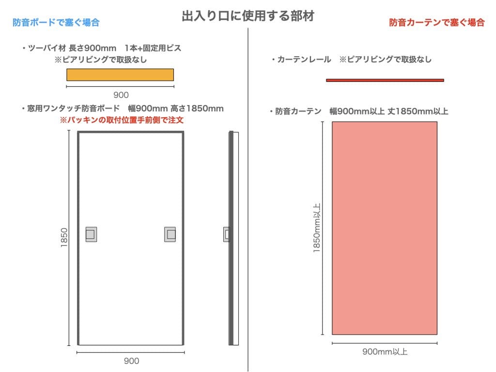 - ※出入り口用(1)窓用ワンタッチ防音ボード:幅900mm 高さ1850mm → 【¥111,650】