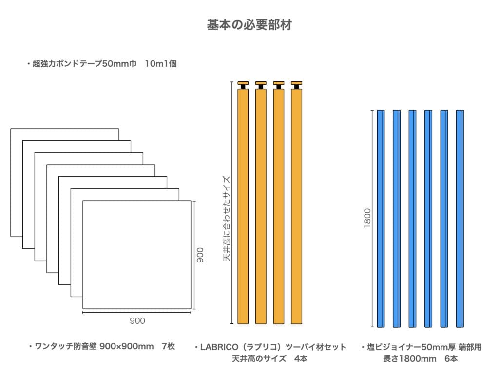 再度組み立てが必要ない方は、ジョイナーを使用せずにラブリコにワンタッチ防音壁をボンドテープでそのまま貼り付けても組み立て可能です。