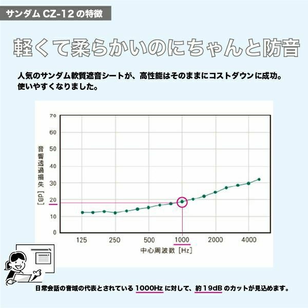 他の画像を見る 高い遮音性能を備えたローコストタイプの遮音シート 【訳あり品】サンダムCZ-12 幅940mm×長さ3m切売り 定価 ¥ 3,850 のところ、訳あり品のため 当店特別価格 ¥ 3,080 税込 販売を終了しました。 お気に入りに登録する