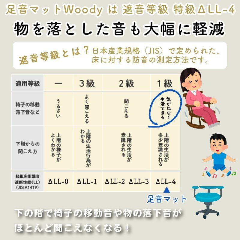 他の画像を見る フローリングのまま防音できる!木目調防音フロアタイル(フローリングタイル) 足音マットWoody 約3畳(36枚セット) 90cm×15cm×9.5mm 価格 ¥ 66,000 税込 在庫切れ お気に入りに登録する