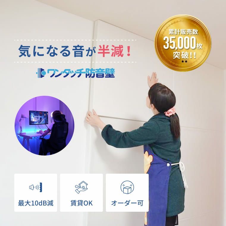 他の画像を見る 賃貸OK!気になる音を半減!工具不要で簡単に防音壁が設置できます。 ワンタッチ防音壁セット プロ 部材:ラブリコ 幅50-900mm 高さ1801-2400mm 価格 ¥ 74,800 税込 お気に入りに登録する