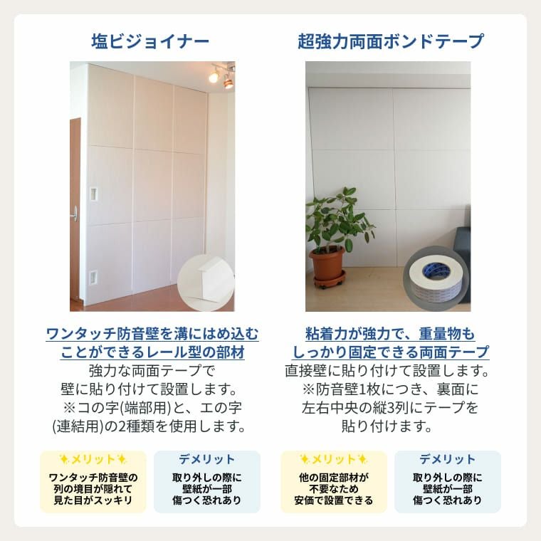 他の画像を見る 賃貸OK!気になる音を半減!工具不要で簡単に防音壁が設置できます。 ワンタッチ防音壁セット プロ 部材:ラブリコ 幅50-900mm 高さ901-1400mm 価格 ¥ 55,000 税込 お気に入りに登録する
